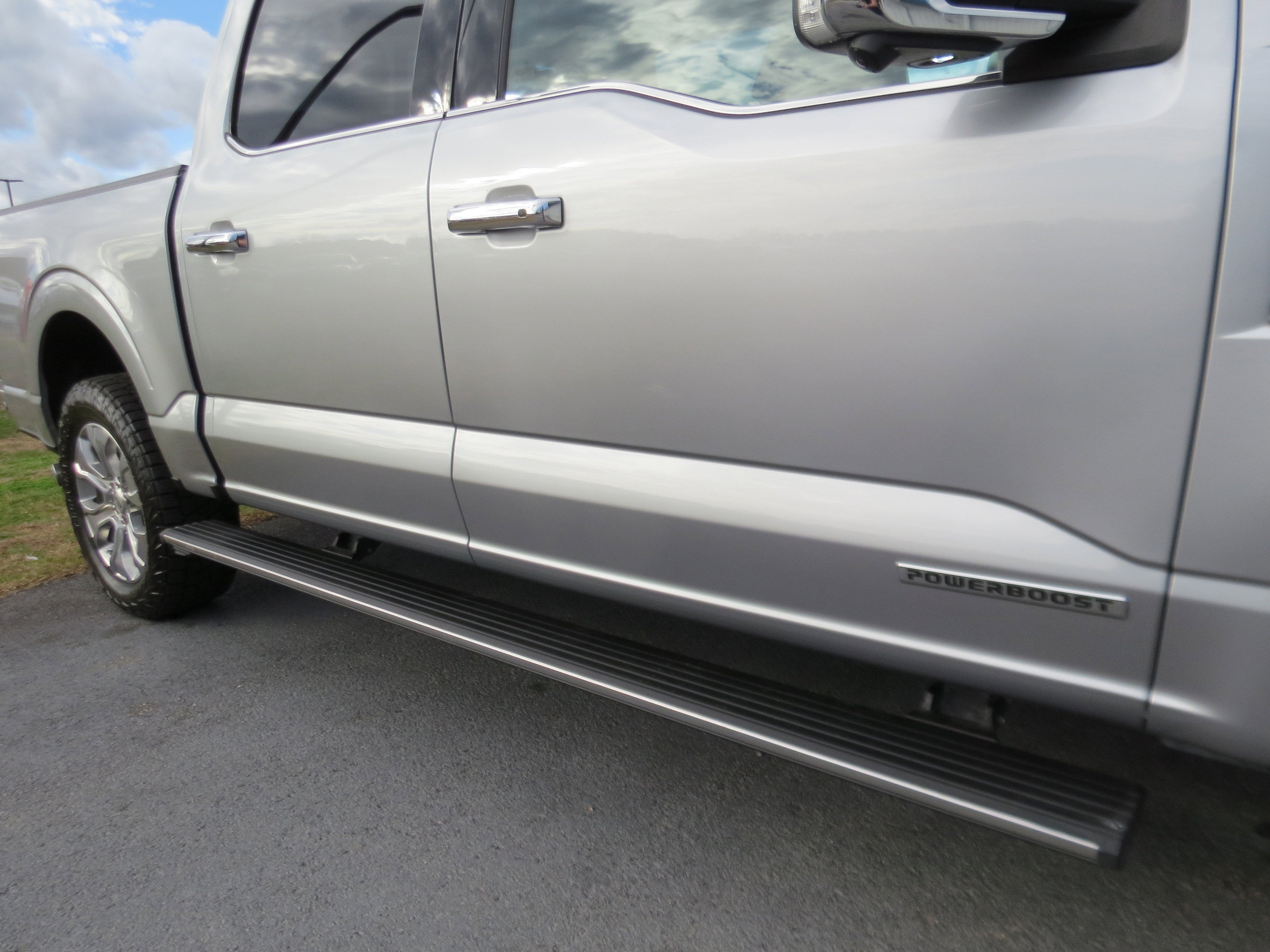 Silver Metallic 2022 Ford F-150 Platinum 3.5L PowerBoost Full-Hybrid V6 10-Speed Automatic 4WD 3.5L PowerBoost Full-Hybrid V6, 4WD, 20 Polished Aluminum Wheels, 360 Degree Camera, 4x4 FX4 Off-Road Bodyside Decal, Active Park Assist 2.0, Adaptive Steering, Adjustable pedals, Air Conditioning, AM/FM radio: SiriusXM with 360L, Auto High-beam Headlights, Automatic temperature control, Bed Utility Package, BlueCruise, BoxLink, Brake assist, Class IV Trailer Hitch Receiver, Delay-off headlights, Electronic Locking w/3.31 Axle Ratio, Electronic Stability Control, Equipment Group 701A High, Exterior Parking Camera Rear, Ford Co-Pilot360 Active 2.0, Front Bucket Seats, Front Center Armrest, Front dual zone A/C, Front fog lights, Fully automatic headlights, FX4 Off-Road Package, Garage door transmitter, Heated front seats, Heated rear seats, Heated steering wheel, Hill Descent Control, Integrated Trailer Brake Controller, LED Box Lighting, Max Recline Driver & Passenger Seat, Memory seat, Monotube Rear Shocks, Off-Road Tuned Front Shock Absorbers, Pedal memory, Power driver seat, Power passenger seat, Power steering, Power Tailgate, Power windows, Pro Power Onboard - 7.2KW, Pro Trailer Backup Assist, Radio data system, Radio: B&O Sound System by Bang & Olufsen, Radio: B&O Unleashed Sound System by Bang & Olufsen, Rain sensing wipers, Rear reading lights, Rear seat center armrest, Rear window defroster, Remote keyless entry, Rock Crawl Mode, Split folding rear seat, Steering wheel memory, SYNC 4 w/Enhanced Voice Recognition, Tailgate Step w/Tailgate Work Surface, Tow Technology Package, Tray Style Floor Liner, Unique Multi-Contour Leather Bucket Seats, Variably intermittent wipers, Ventilated front seats.